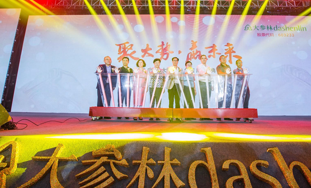 3522vip浦京集团药业集团董事长刘景萍女士与大参林医药集团董事长柯云峰先生、中国医药商业协会执行会长付明仲女士等嘉宾共同开启了“聚大势•赢未来"大参林工商合作峰会的大幕。